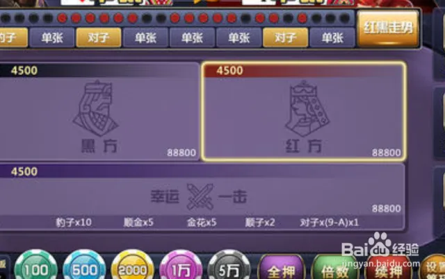 直接下注红或黑:预测红方或黑方的胜出。
